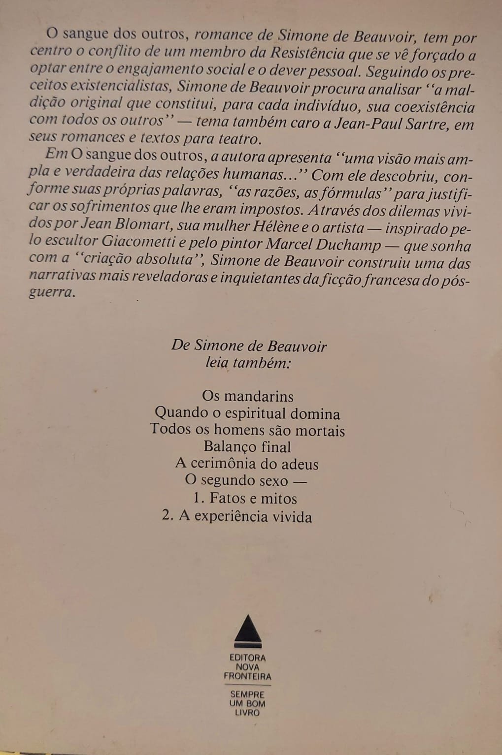 Compre aqui o livro O Sangue dos Outros, Simone de Beauvoir, Editora Nova Fronteira, Capa Mole, 1990 e pague em até 10x no cartão.