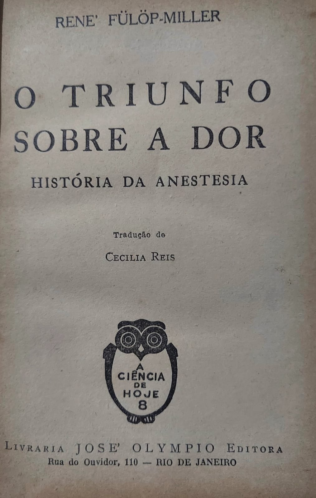O Triunfo Sobre a Dor. História da Anestesia, René Fulop-Miller, 1951.